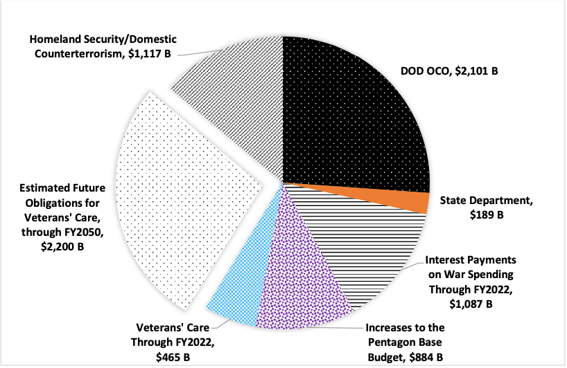 WHEN FACTORING IN ONGOING, SPECIFIC COSTS of the War on Terror, including risibly inhumane medical treatment for veterans, the U.S.’ generation-long – and continuing – war has cost $8 trillion so far.